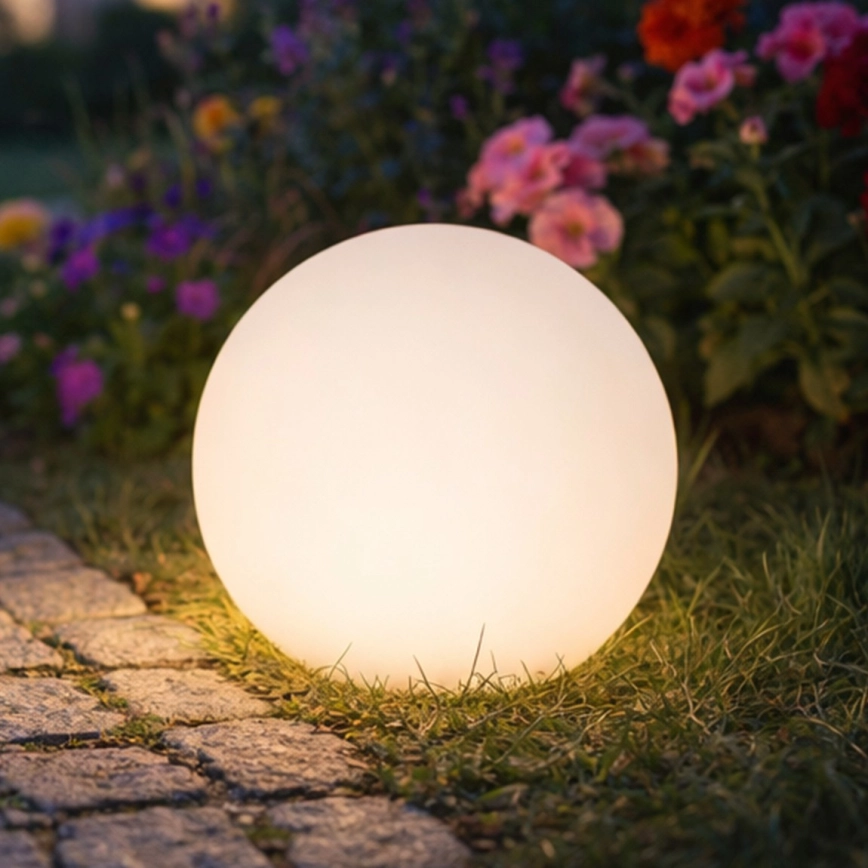 • Ez a világító gömb ideálisan alkalmas sziklakertbe vagy a kert bokrainak környékére.